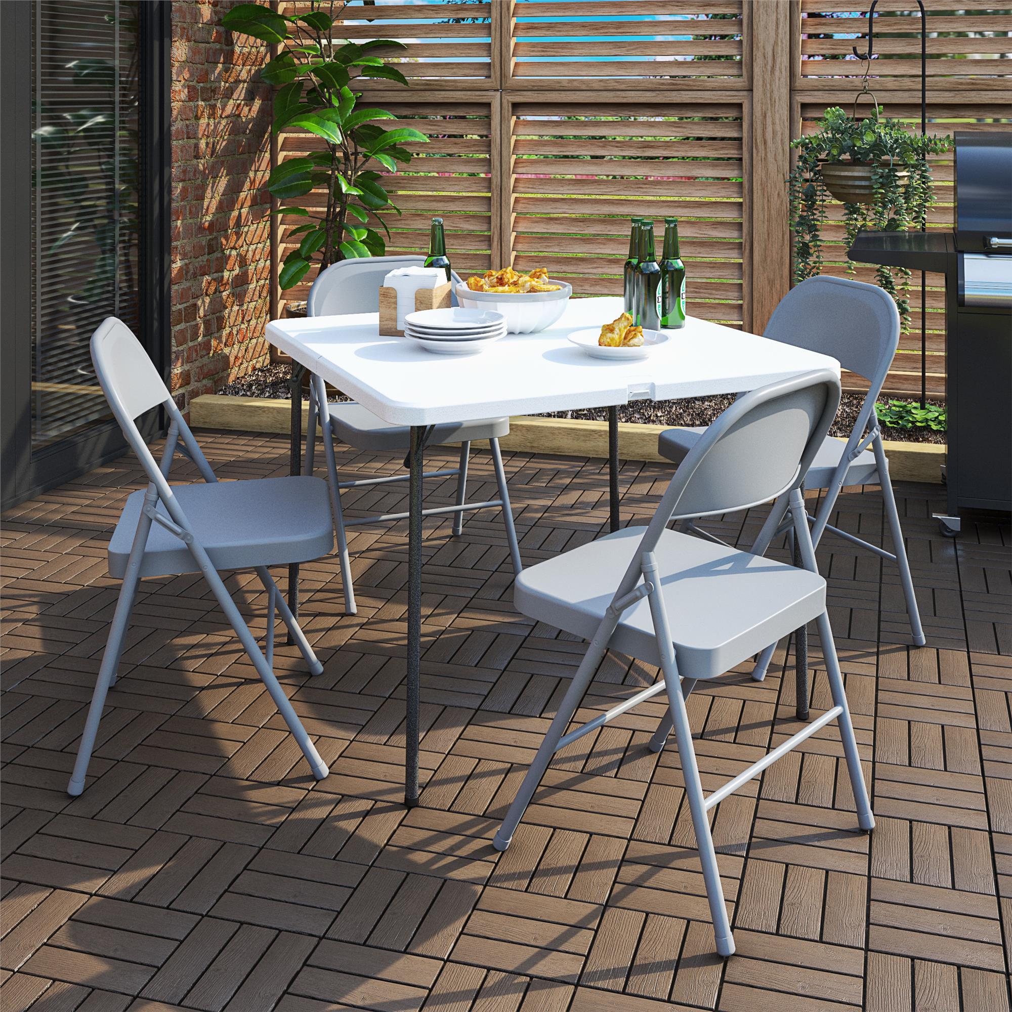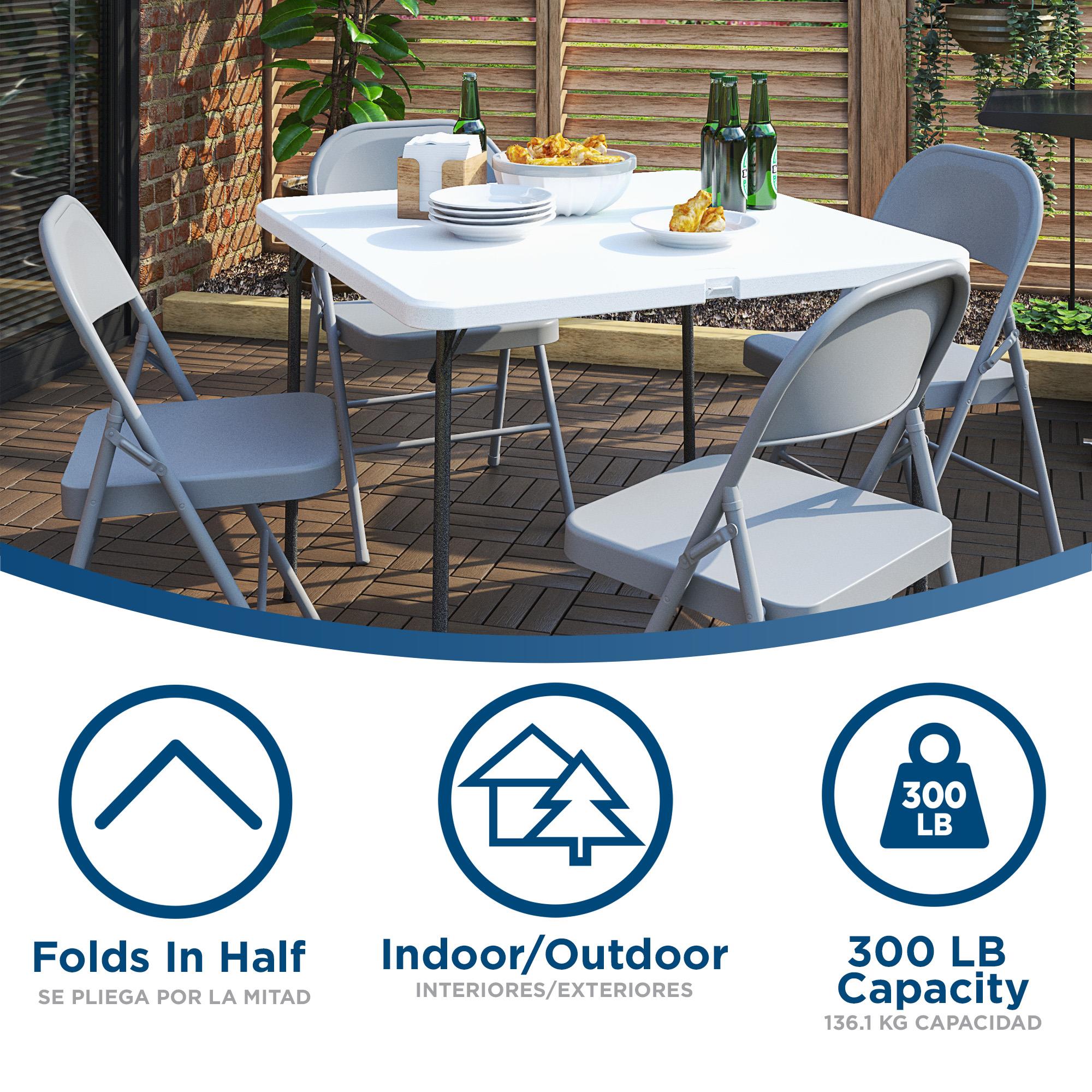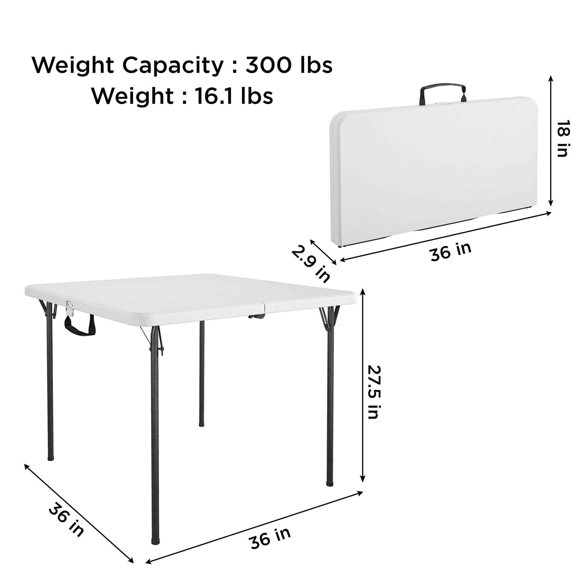 Enhance your next tailgate party, game night, or holiday gathering with our COSCO XL 36" Indoor/Outdoor Resin Fold-in-Half Card Table! With 12% more surface area than a traditional card table, this white resin table adds a touch of relaxation while you enjoy a fun night with your friends and family in both indoor and outdoor settings. Featuring a pinch-free locking system to make set up easy, safe, and worry-free. This product features non-marring leg tips to prevent slipping when in use. This included attribute protects your floor's surface from any possible damage to give you peace of mind. Before storing it away, wipe away any messes with a damp cloth. When game night is done and you are ready to store the table, simply fold it in half and use the handle for easy transportation and storage. This product comes standard with a 1-year limited warranty. The next time you have your family and friends over, simply get this lightweight table and transport to the desired location with COSCO 36" Indoor/Outdoor Resin Fold-in-Half Card Table!