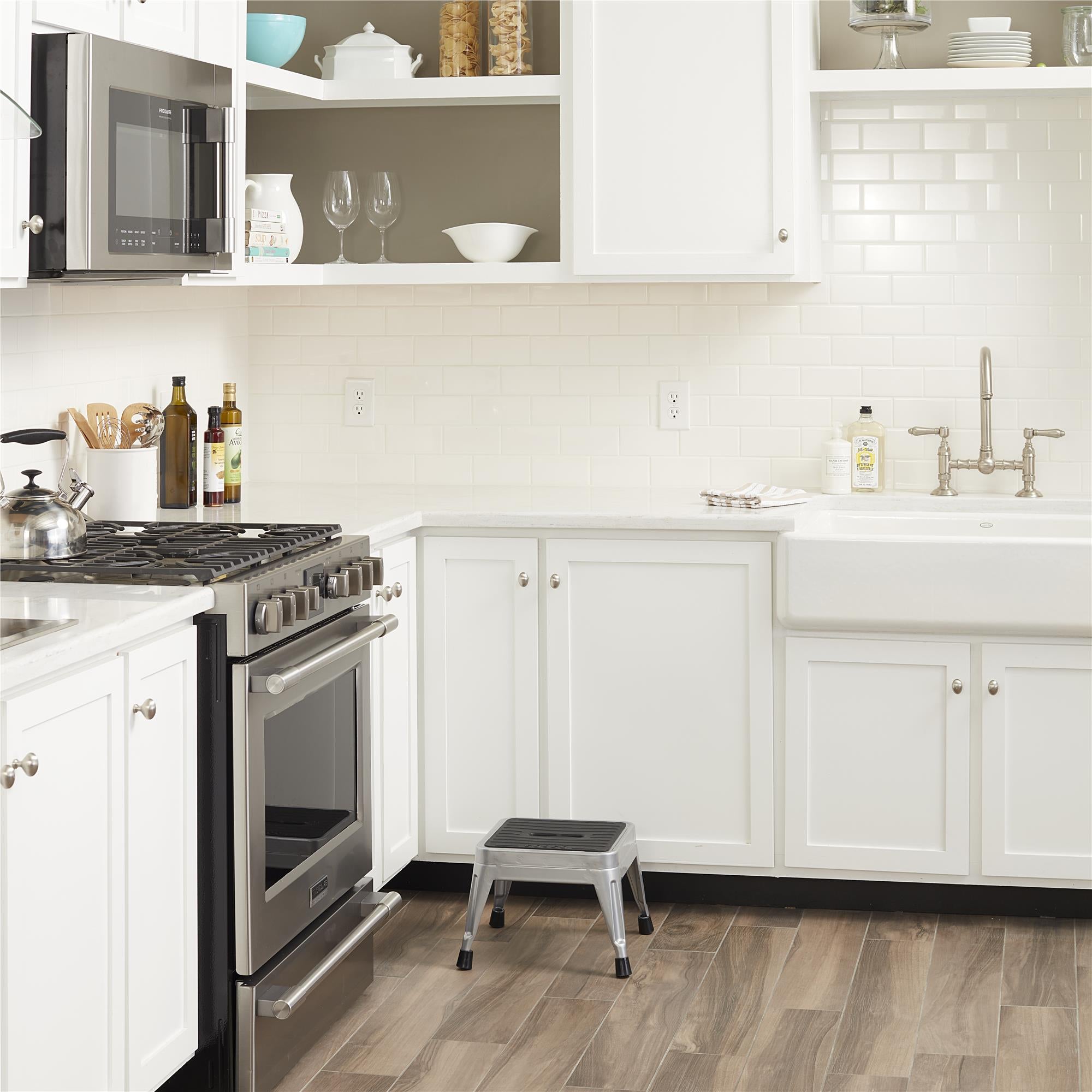 Are you someone who could use an extra lift around the house to help with cleaning or storing items? This non-folding one step is an extra sturdy option for you! The style blends well with any living space. Slip resistant feet allow for additional stability while in use, and no scuff damage to your flooring. Whether you're cleaning, putting items away for storage, or finishing up a small project this step stool will come in handy. While in use, this one step has a Max Reach of 7 feet and 3 inches. Maximum weight capacity is 225lbs - meeting ANSI Type 2 standards.