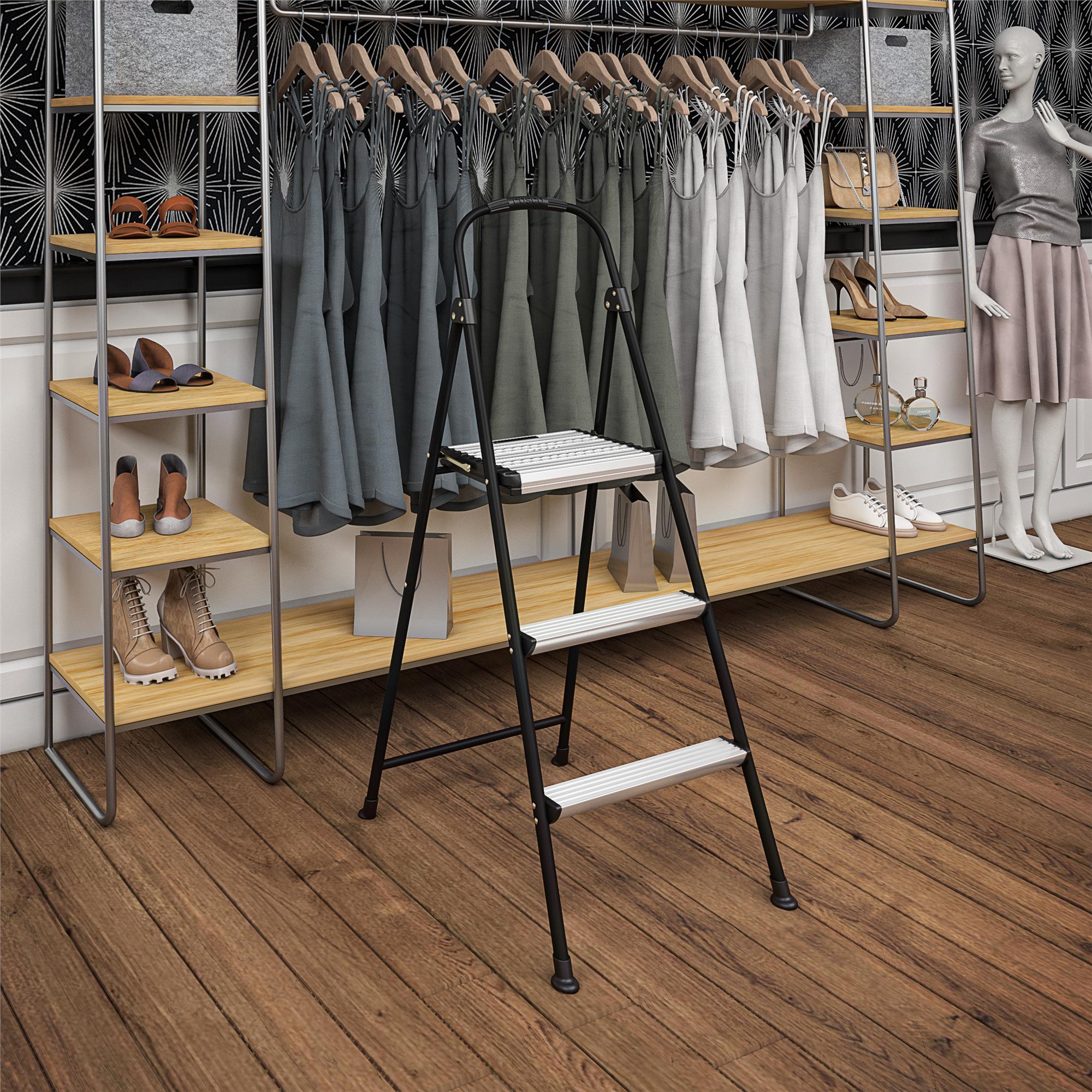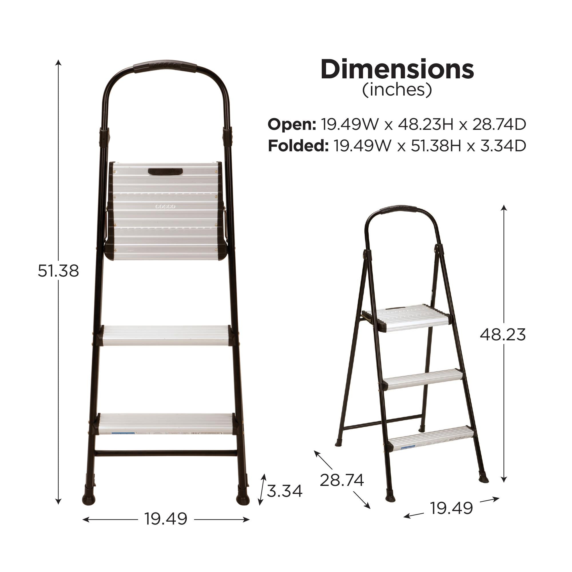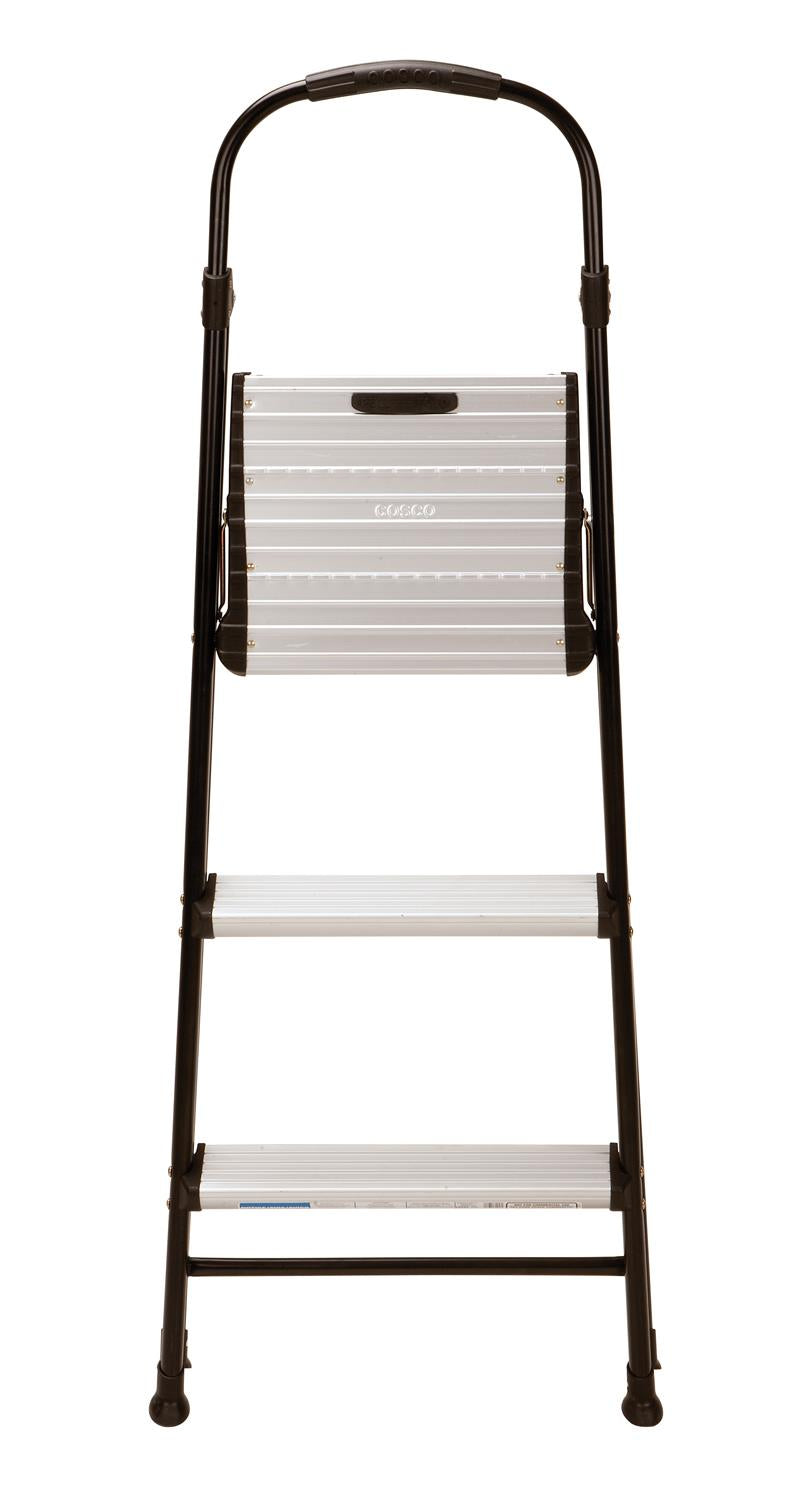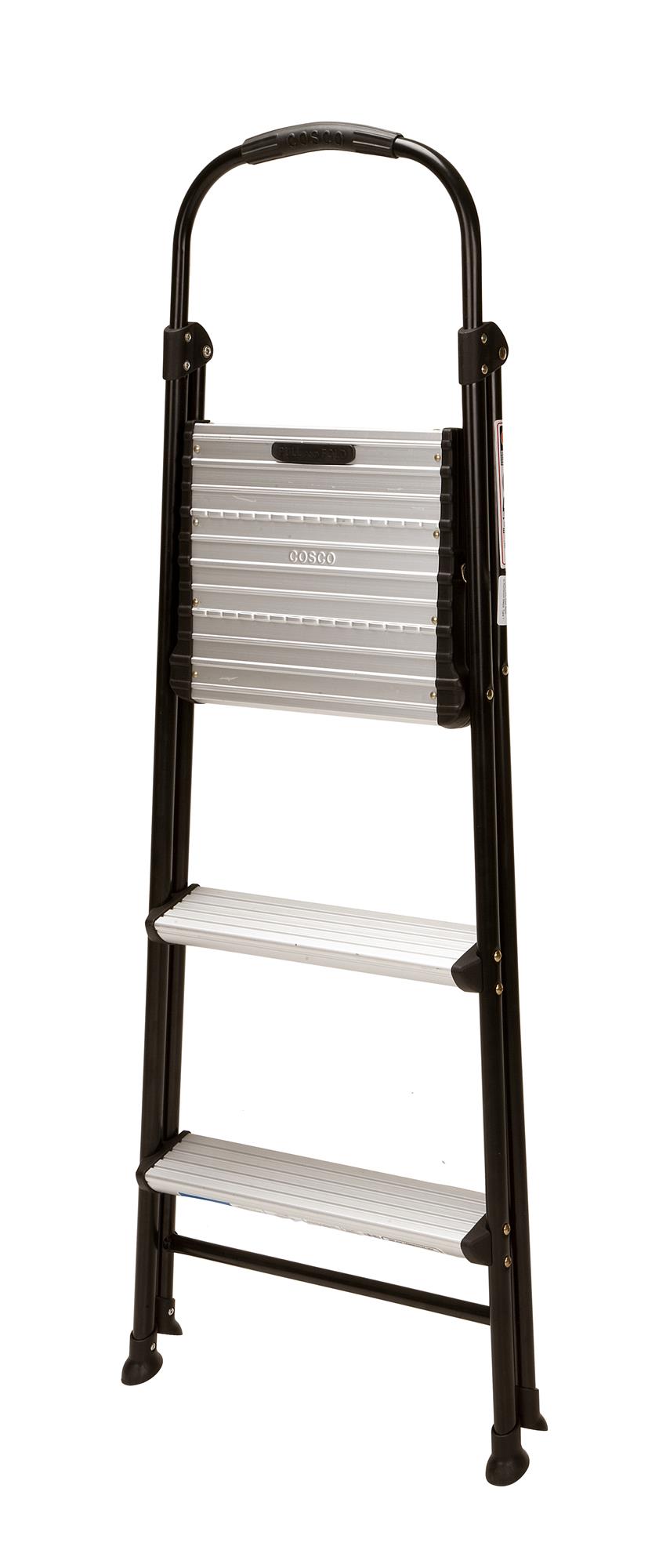 COSCO Three-Step Folding Step Stool is ideal for any task around the house! Whether it's reaching that high cabinet, changing a light bulb or washing the windows, our products make it easier to get any job done with an 8 Ft. 10 in. Max Reach* This lightweight step stool provides security and stability to any job. *Max Reach assumes a 5 Ft. 6 in. person with a vertical 12 in. reach