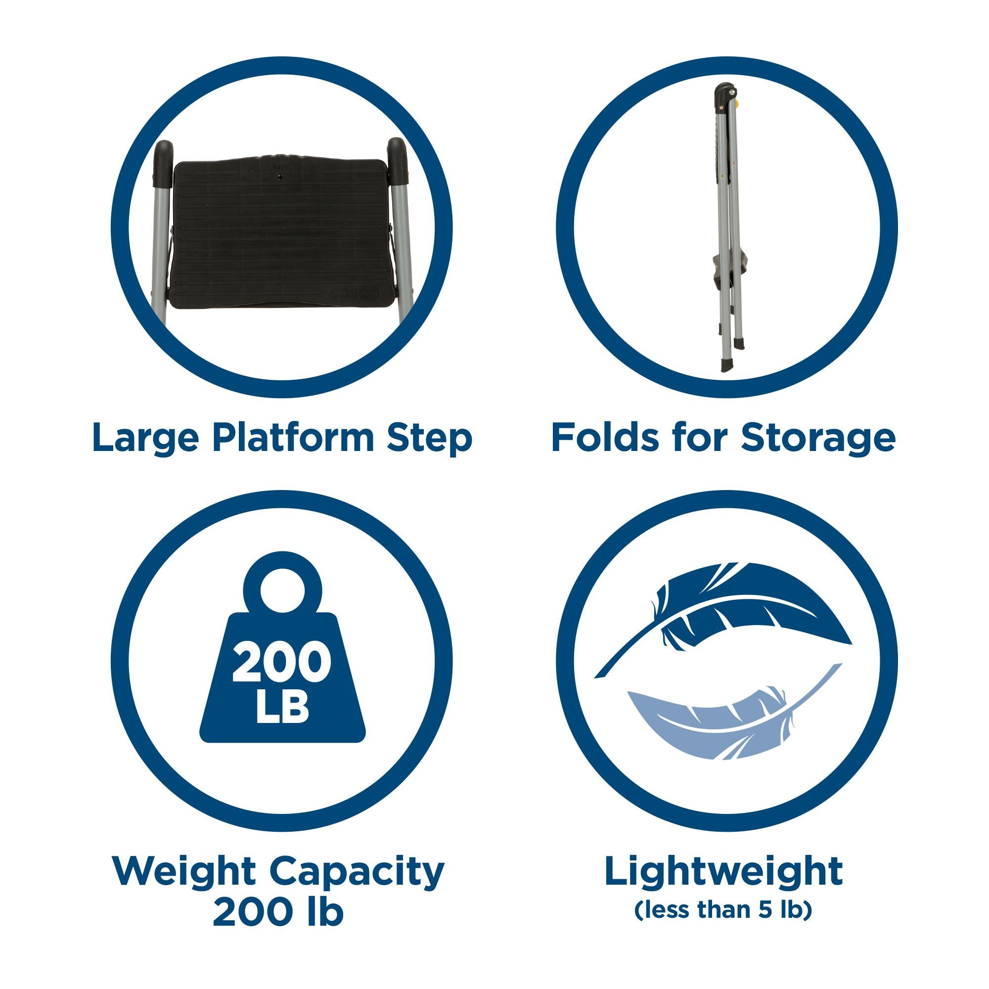 L'escabeau 2 marches COSCO en acier et résine, sans poignée, est idéal pour toutes les tâches ménagères. Qu'il s'agisse d'atteindre un meuble haut, de changer une ampoule ou de laver les vitres, ce marchepied simplifie toutes vos tâches. Son cadre en acier léger, d'une capacité de charge de 90 kg, offre sécurité et stabilité pour tous vos travaux. Sa conception sans poignée facilite son rangement lorsqu'il n'est pas utilisé. Un système de déverrouillage d'une seule main permet une ouverture et une fermeture sans effort.